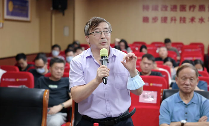 潘耀良副院长作总结发言,感谢两位讲者的倾情分享与无私奉献,为与会医务人员带来满满的实战干货。同时,他还对本期大讲堂的圆满成功给予肯定,科主任踊跃带头,年轻骨干医生积极投身参与,学习交流氛围日渐浓厚,探索热情持续高涨。潘副院长表示,希望全体医务人员将所学的新理念、新知识、新技术带回岗位,造福患者。