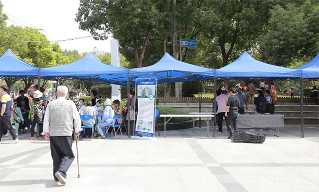 上海蓝十字脑科医院神经内科5B病区主任余志良、中医科李均平博士等组成的志愿医疗队早早来到活动现场,为居民提供健康信息服务、血压测量等专业而暖心的服务。