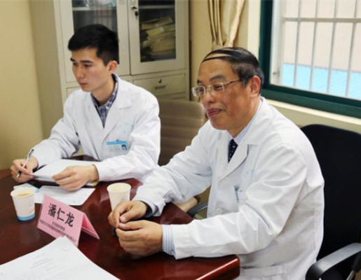 图7:潘仁龙主任忙完演讲后,在接待会诊患者