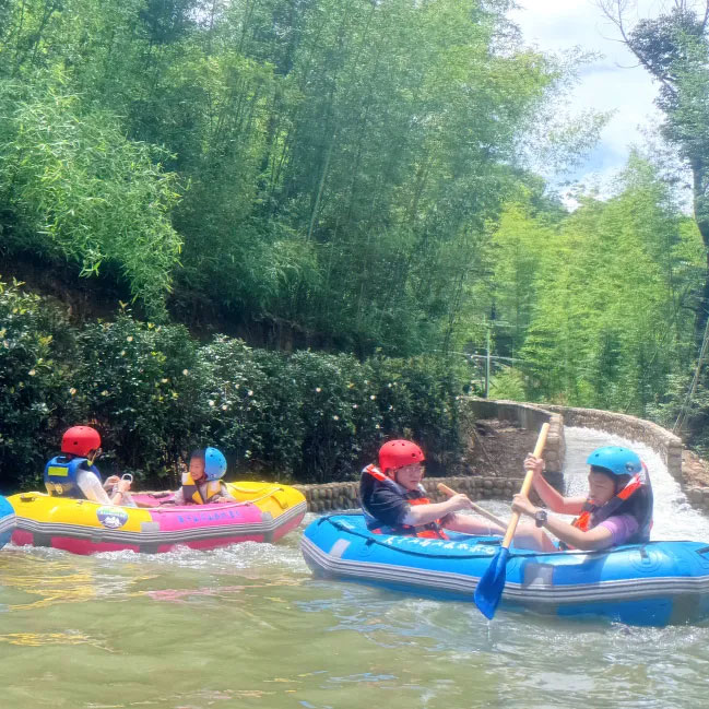 湍急水流、飞溅浪花间,翠绿景色尽收眼底,大家忘却工作疲惫,活力全开。团队默契在欢声笑语中悄然升温,为旅程奠定了轻松基调。