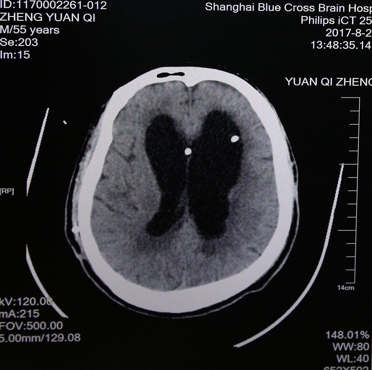 郑元齐,男,54岁,2016年9月19日外出做新生入学审核途中发生严重车祸,头部受到强烈撞击,导致严重颅脑损伤,当即被送到福建当地一家部队医院抢救,给予V-P分流术后,一直处于深度昏迷,并发两肺炎症伴胸腔积液。为求进一步治疗,今年2月转入上海某医院。没有好转,且情绪反应消失。2017年3月17日,郑元齐转入上海蓝十字脑科医院。