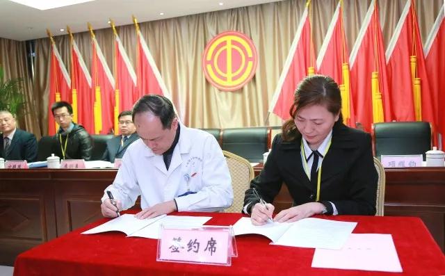 蓝十字脑科医院院长项耀钧(左)代表医院签约