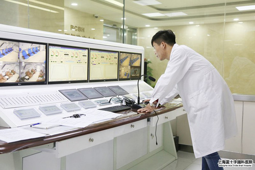 主任隆重介绍了上海蓝十字脑科医院高压氧舱群,同时也是上海较大的高压氧舱——4舱10门GY3400型方圆高压氧舱群。