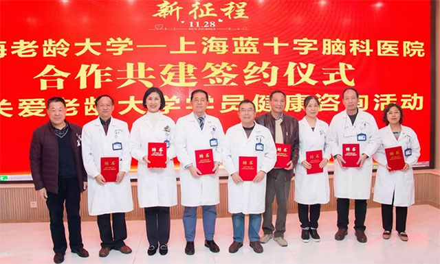 11月28日,上海老龄大学—上海蓝十字脑科医院合作共建签约仪式暨11.28 关爱老龄大学学员咨询活动在上海蓝十字脑科医院顺利举行。上海老龄大学教务主任濮圣奎、上海老龄大学医疗保健协会会长孙海锋、理事及学员近50位及上海蓝十字脑科医院院长项耀钧、书记朱敏,工会主席吴春芳,副院长潘耀良、副院长周克祥等出席了本次签约仪式,10余位主要科室的授课教授、主任医师等参加了本次签约仪式,仪式由郭俊艳副院长主持。