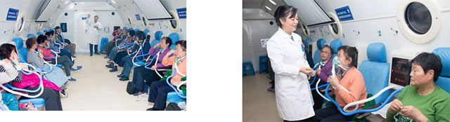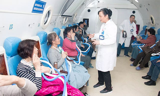 在高压氧科主任杨玲专业而细致的讲解后,适合做高压氧体验的老龄大学学员进入了高压氧舱。