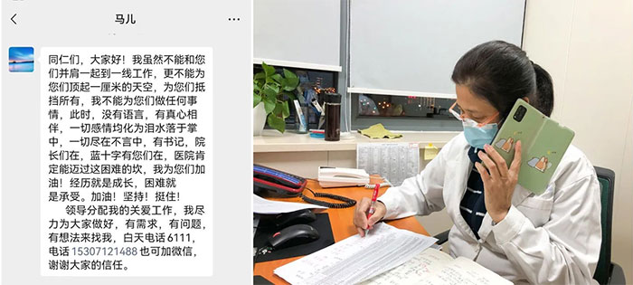 面对近期疫情的严峻形势,积极乐观的情绪、健康向上的心态,也是一种强大的免疫力。然而,有些在院和居家隔离的员工难免会出现恐慌情绪,为此,党支部书记朱敏牵头总协调,党支部副书记郭荣峰负责人力资源协调,医保科陈琴湘科长担任关心关爱组组长,通过电话或微信的的方式,对派往各隔离点工作的医护以及居家隔离状态的员工做好心理疏导及慰问安抚,及时进行心理干预,排除缓解心理压力,消除后顾之忧,筑牢心理防线,积极迎战疫情。
