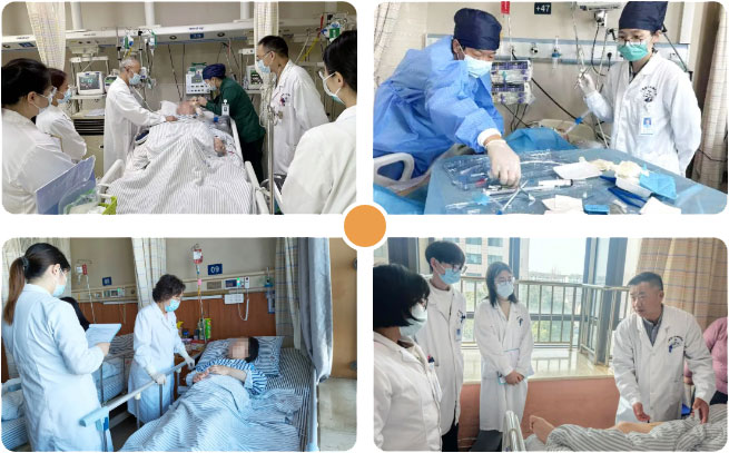 为降低误吸风险,在6B神经外二科副主任卢云鹤博士支持下,吴锦护士长与B超声科李玉龙主任团队先后为5位患者更换鼻肠管,并为4A病区患者完成一例置管。