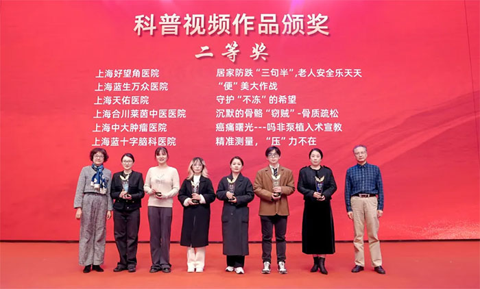 经过两轮激烈角逐,医院选送的作品在【科普短视频/新媒体推广/病历译写】赛道中表现突出,最终荣获三等奖。上海蓝十字脑科医院也因积极参与活动,被活动组委会授予“优秀组织奖”,以感谢医院为提升市民健康素养贡献了一份力量。